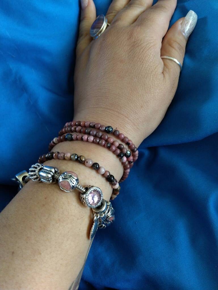 Rhodonite is a beautiful pink and black gemstone that is often used in jewelry. This specific 4mm Rhodonite Crystal Bead Bracelet is a stretch bracelet designed to fit both men and women with a size of 7.5 inches.