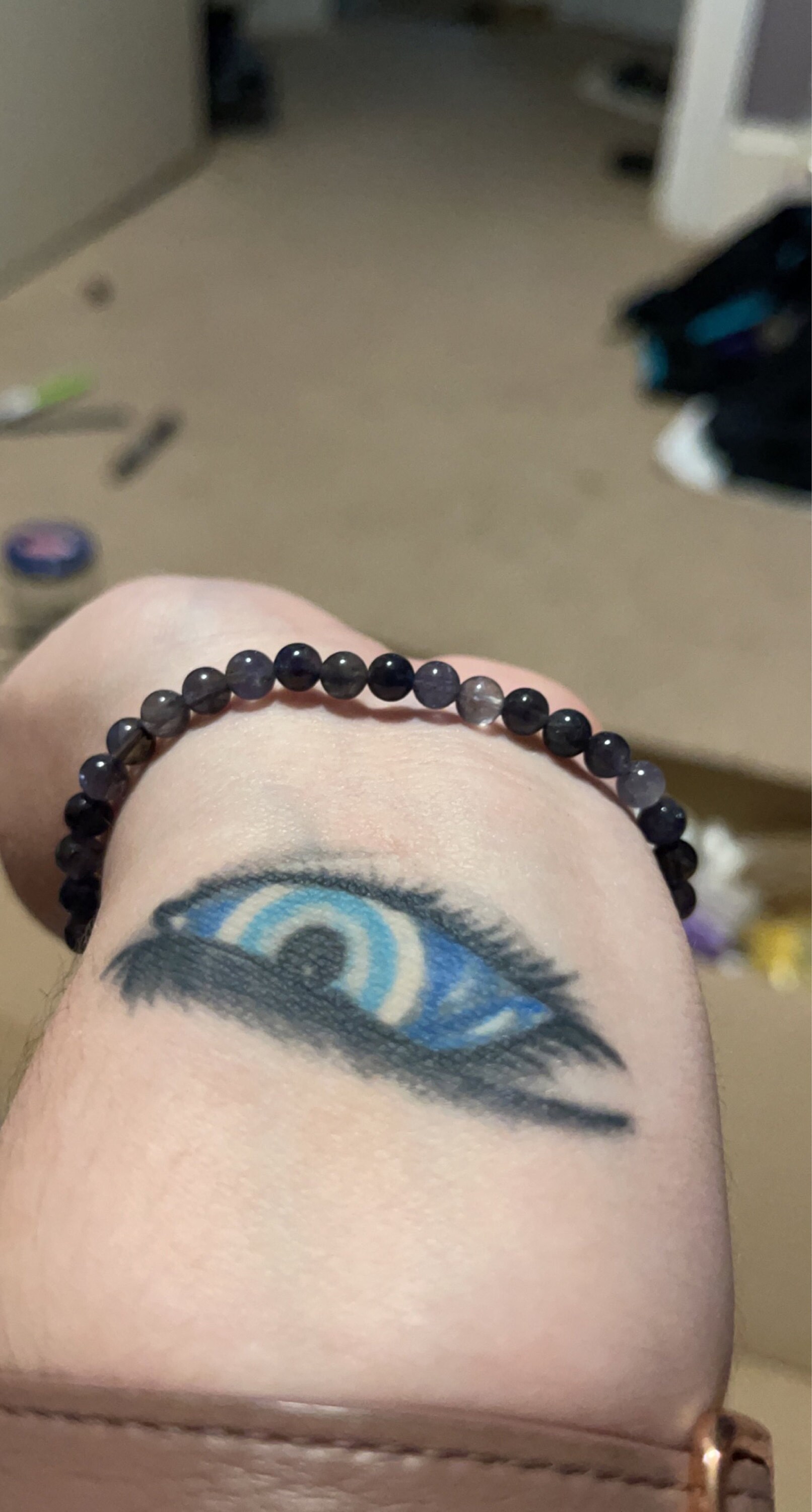 Iolite is a natural gemstone. Variations in blue to violet tone, color depth, and bead appearance are normal and part of each bracelet’s unique beauty.