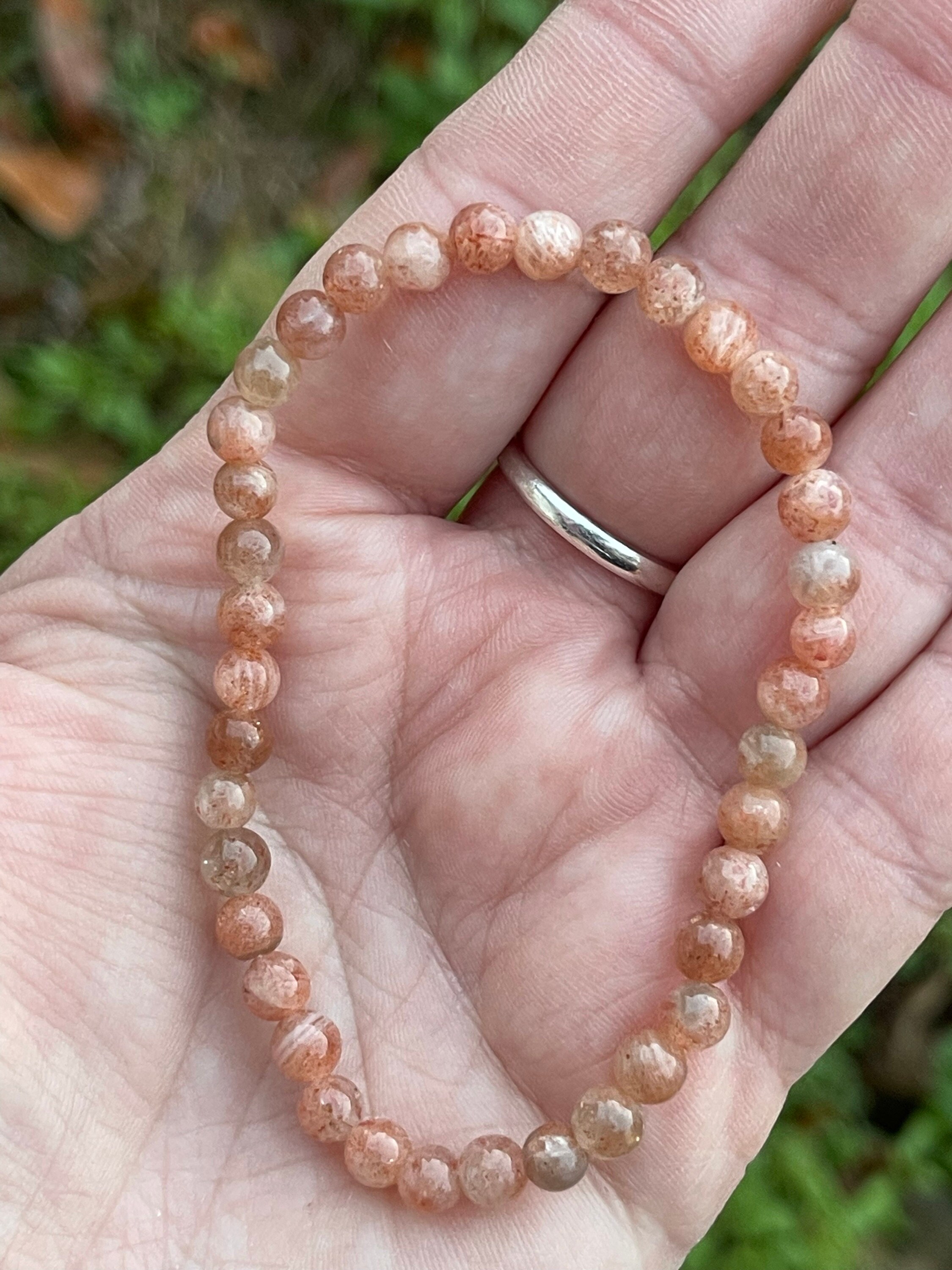 Peach Moonstone is a natural gemstone. Variations in tone, chatoyancy, and bead color are normal and part of each bracelet’s unique beauty.